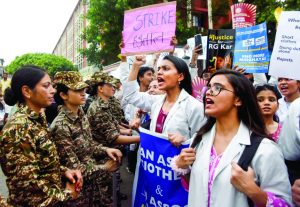 You are at:Home»এক নজরে»সময় বেঁধে বাধ্যতামূলক বিচার  »Delhi: Doctors protest against the sexual assault and murder of a trainee doctor