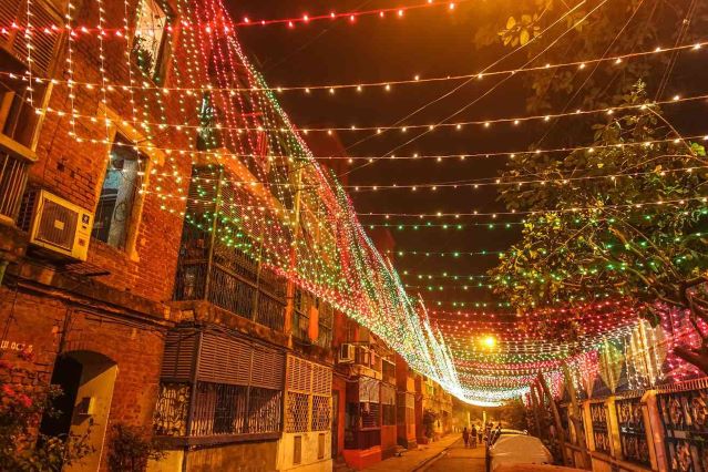 কলকাতা ব্যুরো: বছর শেষে কলকাতা আলোই সেজে উঠলেও বো বারাক এবার উৎসবহীন। কলকাতার অ্যাংলো পাড়ায় বড়দিন এবার ফিকে। করোনা আবহে বাতিল বো-বারাক ফেস্ট। বড়দিন মানেই যেমন পার্ক স্ট্রিটের উদ্যমতা তেমনই নিজস্ব আভিজাত্যে সেজে ওঠে বো বারাক। প্রথম বিশ্বযুদ্ধের সেনা হাসপাতাল থেকে আজকের কলকাতার অ্যাংলো পাড়া শতাব্দী প্রাচীন লালবাড়ি গুলো আজও গল্প শোনায়। বাড়ির ইট গুলোয় লুকিয়ে শহরের ইতিহাস। আলো ঝলমলে অলিগলি, ওয়াইন, কেক পেস্ট্রি, নাচে গানে জমে ওঠে বো বারাক ফেস্ট।